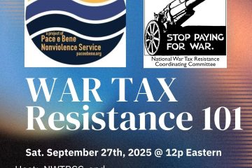 NWTRCC will be hosting an introduction to war tax resistance (WTR 101) workshop on Saturday September 27th at 12 pm Eastern/ 9 am Pacific time. The session will be co-facilitated with members of the Pace e Bene tax resistance affinity...Continue reading→